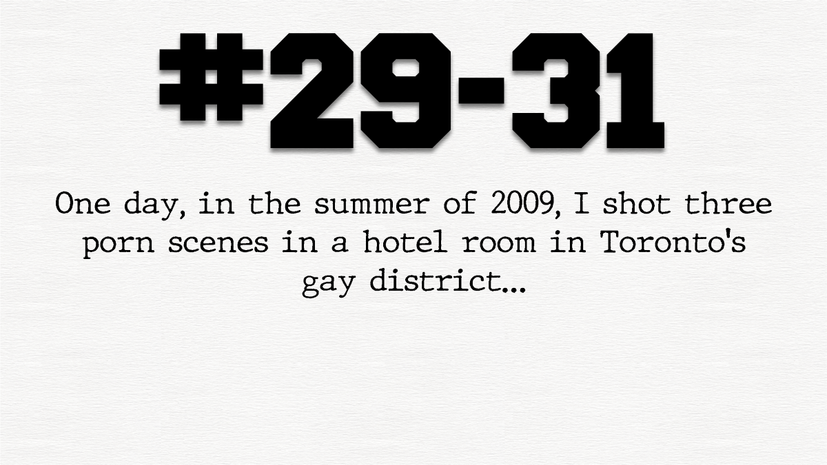 One day, in the summer of 2009, I shot three porn scenes in a hotel room in Toronto’s gay district.