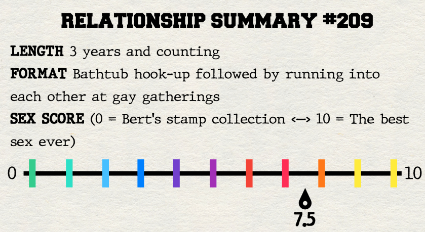 Although there was a certain sense of mutual attraction, I don’t think there was much sexual chemistry between me and Guy #208 and #209. But sometimes you find yourself at a party with naked people and before you know it you’re sharing a bathtub with the twins, where casual conversation eventually becomes a few blowjobs.