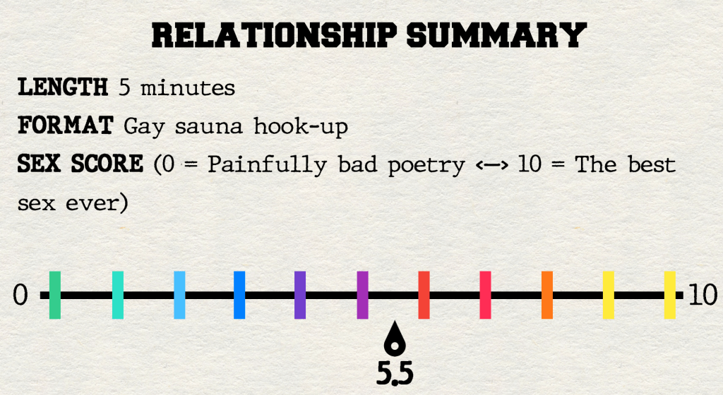 At the same time I had paid €19.95 to be in a gay sauna. It’d be a waste not to bend over. And besides, literally everything about Guy #212 was petite, which meant little to no agony on my end.